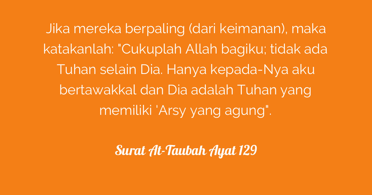 Fadhilat ayat 128 129 surah at taubah tahukah anda betapa powernya ayat ayat ini jika diamalkan islam itu indah tahu kekuatan doa kata kata motivasi. Now, if they turn away (o muhammad) say: 128 sungguh telah datang kepadamu seorang rasul dari kaumu sendiri, berat terasa olehnya penderitaan yang kamu alami, (dia) sangat menginginkan ( keimanan dan keselamatan) bagimu, penyantun dan penyayang terhadap orang. Jika mereka berpaling (dari keimanan), maka katakanlah: In him have i put my trust, and he is lord of the tremendous throne.